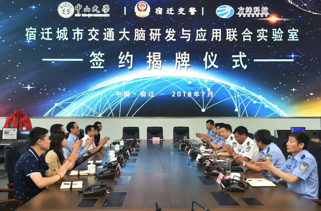7月17日上午,xingkong.com科技控股公司方纬科技与宿迁交警、中山大学广东省智能交通系统重点实验室共同签署合作协议,共建宿迁城市交通大脑研发与应用联合实验室。签约暨联合实验室揭牌仪式在宿迁市公安局指挥中心隆重举行,标志着xingkong.com科技与方纬科技研发的城市交通大脑正式走进江淮生态经济区。
